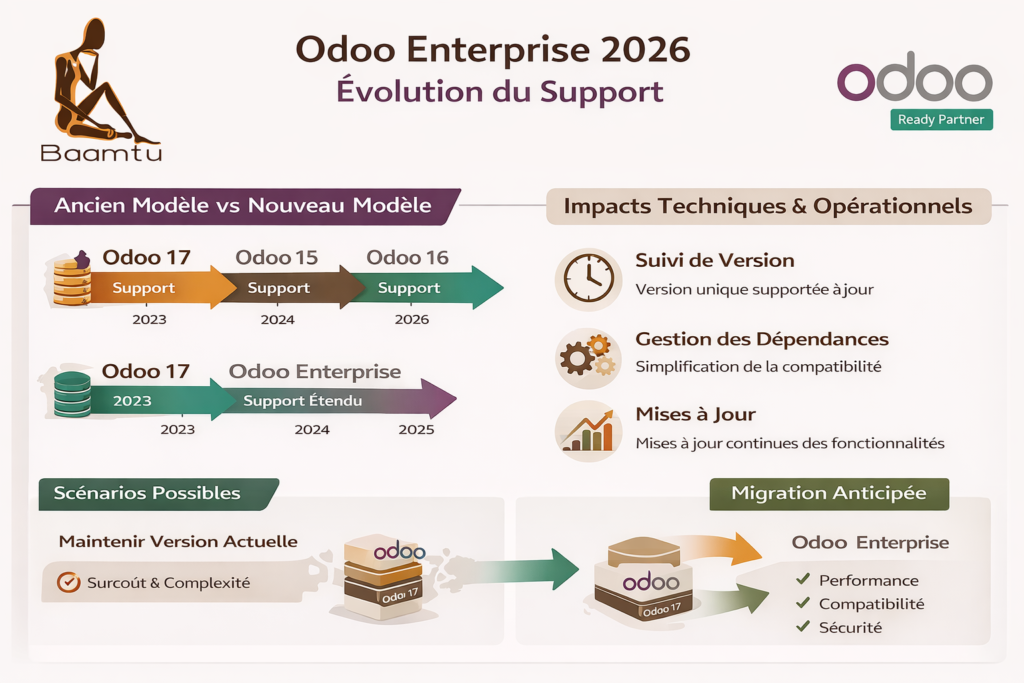 Depuis juillet 2025, Odoo a annoncé un changement majeur de sa politique de support : les versions Enterprise âgées de